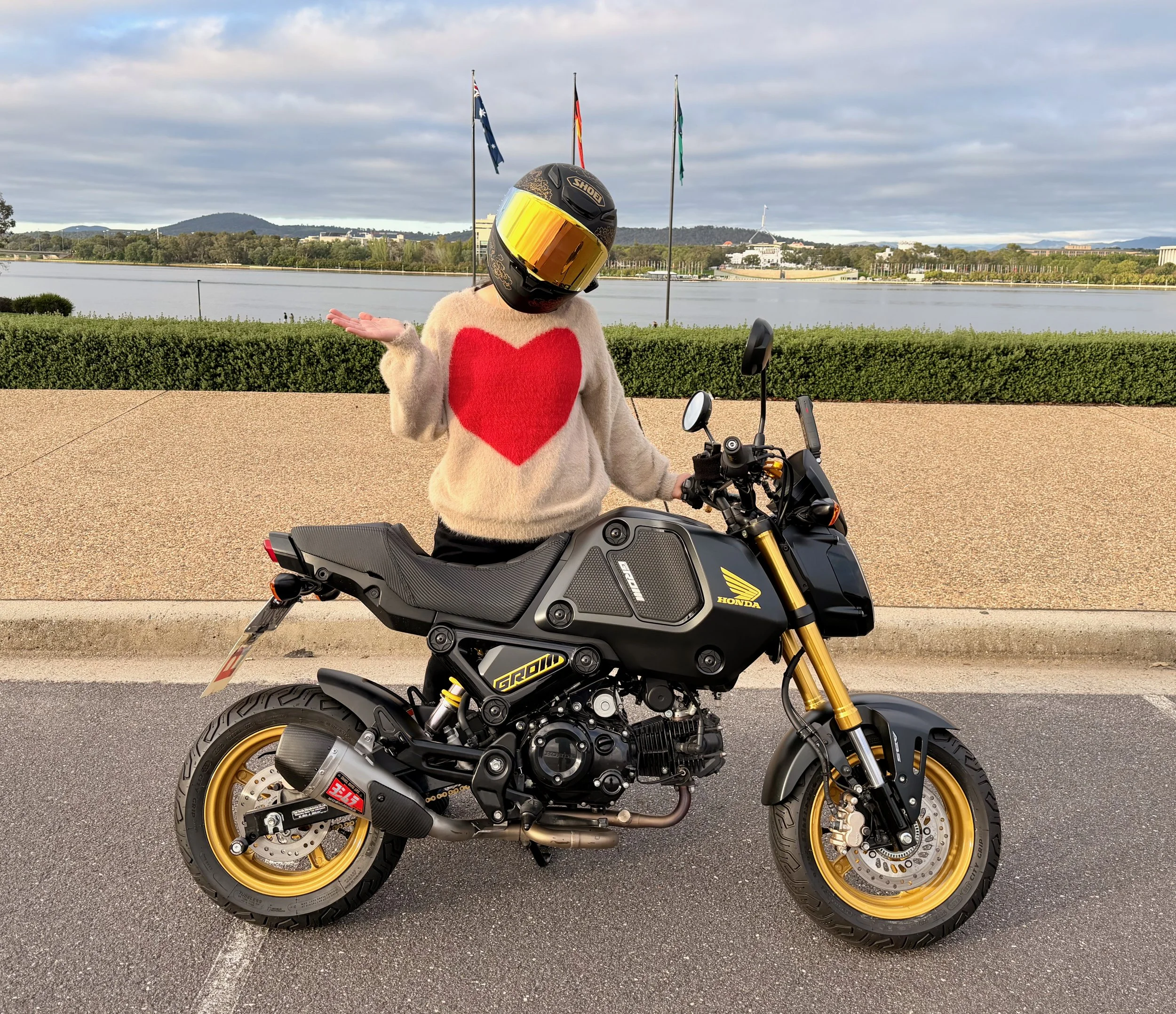 Gold and Carbon: To nail the aesthetic up top, I bolted on a set of aggressive golden levers. Then, I swapped out the notoriously uncomfortable stock foam for a custom-made carbon fibre seat from Thailand. It looks incredibly premium and saves her from the dreaded "Grom-butt" on longer rides - not to mention the dip helps with her flat-footing this bike (which was important to me from a safety perspective, given I do have strong feelings for this little gremlin).